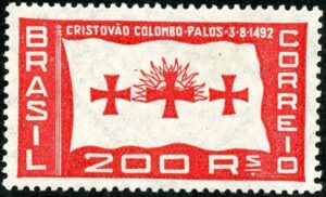 En toda América se emitieron sellos postales conmemorativos con la imagen y alusiones a la bandera, la Hispanidad y su simbolismo.