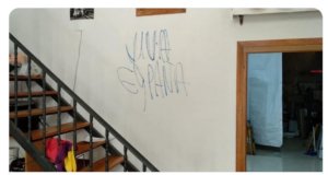 En concreto, fueron dos las pintadas que denuncia la formación de extrema izquierda en su comunicado a las que califica “de carácter fascista”, y que son por este orden “Viva España” y “Rojos a la cuneta”. Llaman la atención los eslóganes elegidos por los asaltantes, tan en línea con el imaginario colectivo atribuido a la extrema derecha, a la que señalan como autor del agravio en su propio comunicado, volviendo cómo no, a las dos Españas que tanto gusta evocar a la izquierda después de más de ochenta años, si bien, la foto más compartida en redes sociales, y que parece ser, ha generado mayor inquietud entre los correligionarios de la formación, es la pintada en la que se vitorea a nuestra patria, España.