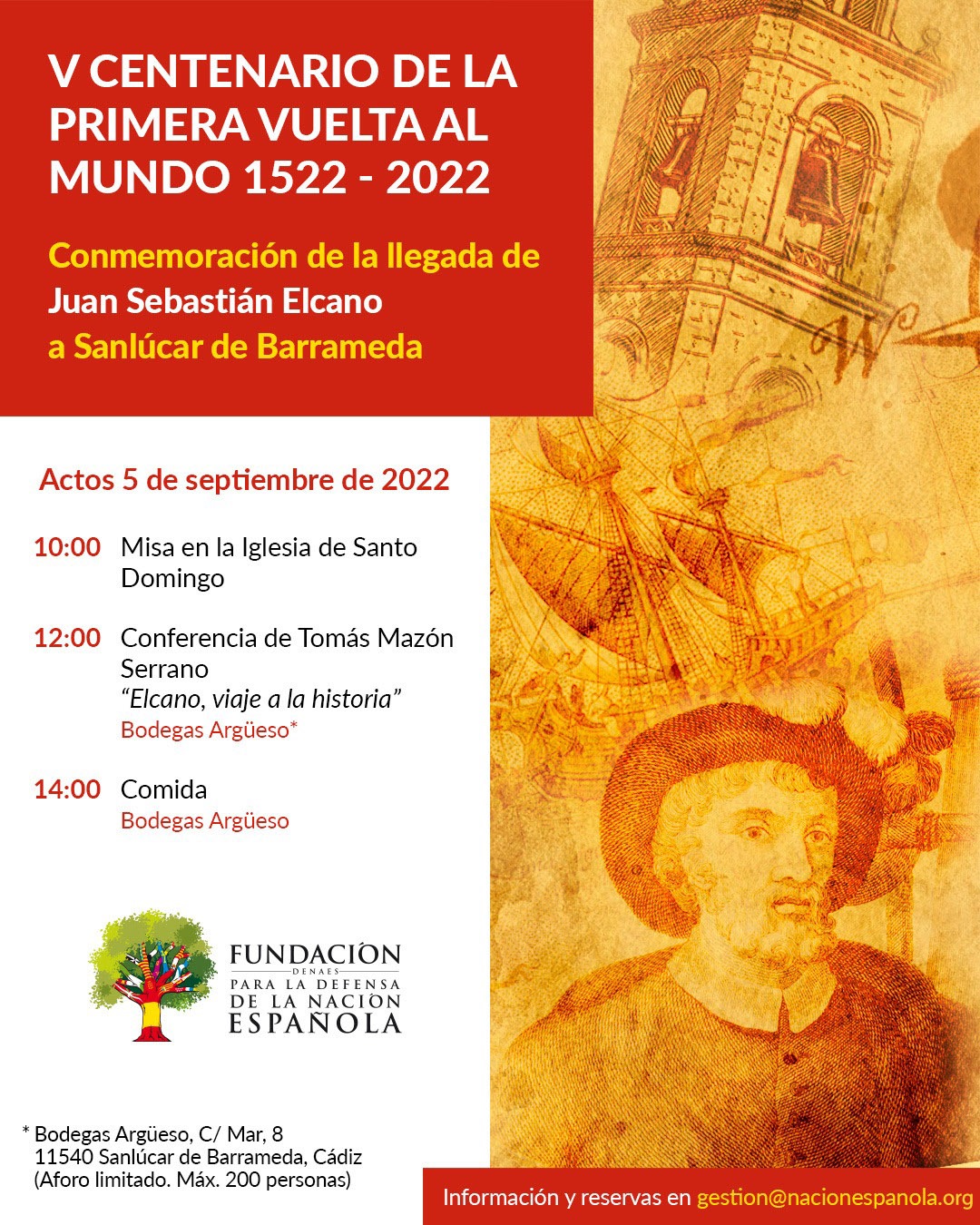 El próximo 5 de septiembre, la Fundación DENAES celebrará en Sanlúcar de Barrameda una serie de actos conmemorativos del V centenario de la llegada de Elcano a España después de completar la primera circunnavegación. Los interesados en acudir a los ...