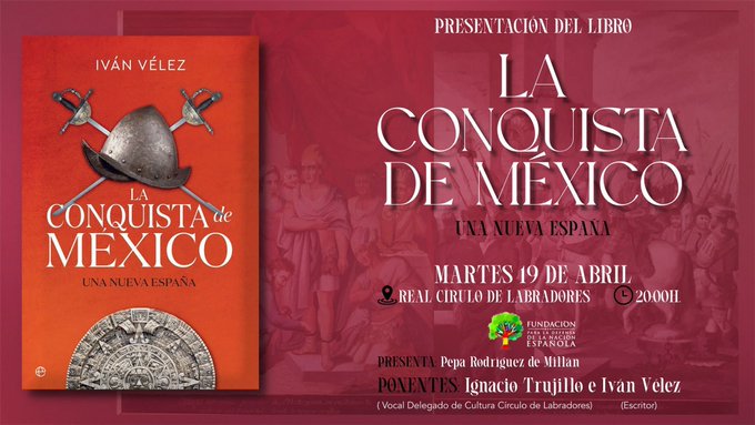 Presentación de libro "La conquista de México", de Iván Vélez, en el Real Círculo de Labradores y Propietarios de Sevilla. Martes 19 de abril, a las 20.00 hs.